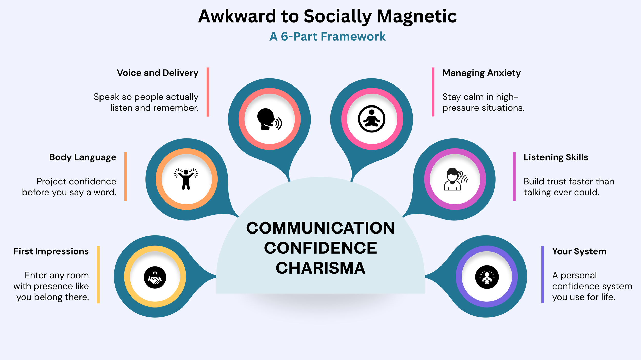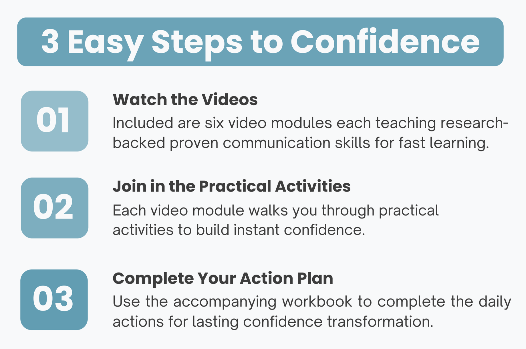 This course isn’t about becoming someone you’re not. It’s about learning the specific skills that are used by the top 1% of confident communicators, and practicing them until they become second nature.